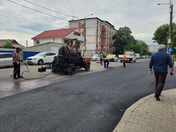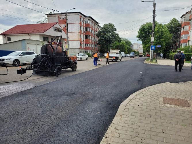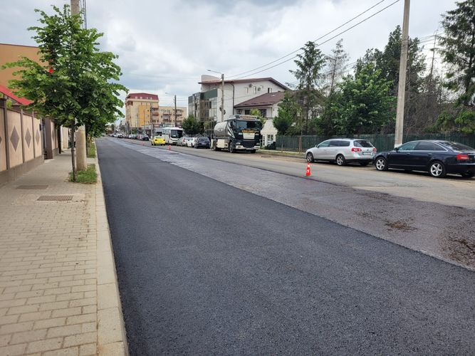 A început turnarea stratului final de asfalt pe strada Colonel Simionescu Sava.