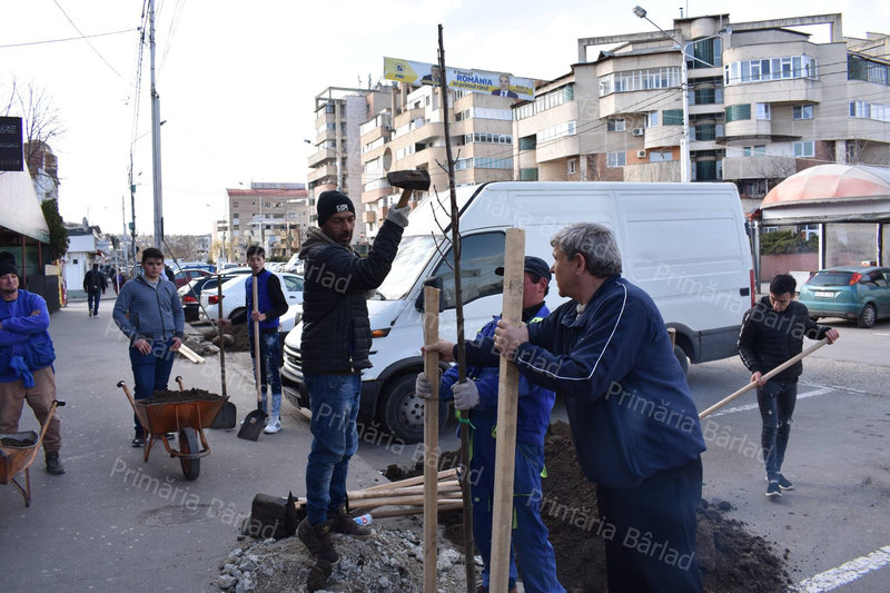Acțiune în forță, ieri, de la ora 15.00, a voluntarilor bârlădeni care au răspuns pozitiv apelului, lansat de primarul Dumitru Boroș, de plantare de copaci pe mai multe străzi din localitate. În mai puțin de două ore, zeci de oameni, de toate categoriile sociale, și-au unit forțele și au plantat toți copacii aflați în rezervele Serviciului de Gospodărire Locală.
