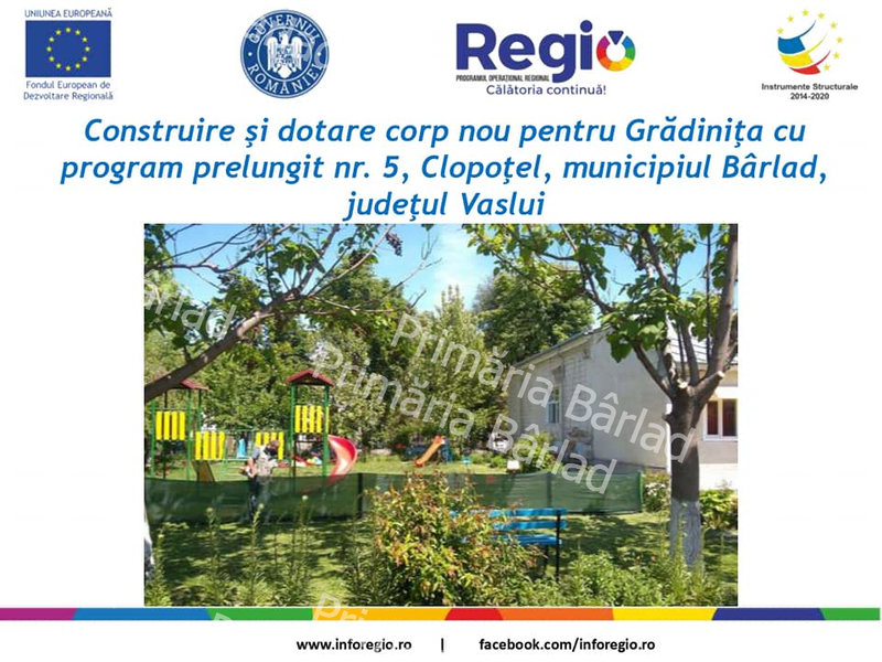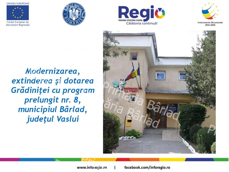 Recent, Municipiul Bârlad a lansat două importante proiecte finanțate din fonduri europene, care privesc construirea unei noi grădinițe în localitate și modernizarea și extinderea alteia. Este vorba despre Grădinița nr. 5 și nr. 8, două proiecte în valoare totală de circa 9 milioane lei. Mai multe informații puteți găsi mai jos.