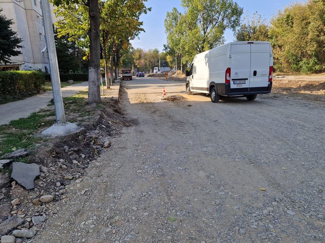 În paralel cu turnarea covorului asfaltic, se lucrează la pavarea trotuarelor. Zilele acestea s-au montat pavele pe trotuarele de pe ambele părți ale străzii, între intersecția cu strada Siret către FEPA.