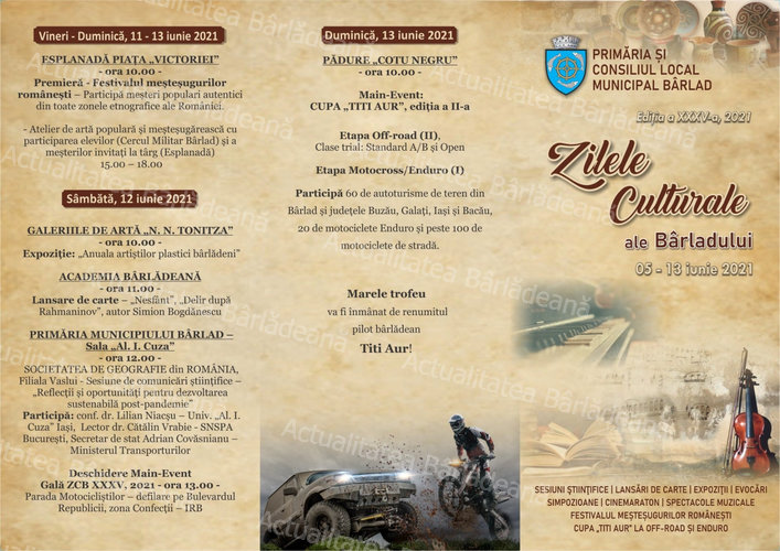 Sâmbăta, 5 iunie 2021, începe cea de-a XXXV-a ediție a Zilelor Culturale ale Bârladului!