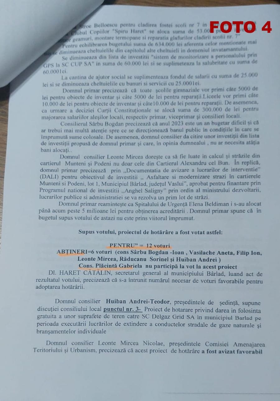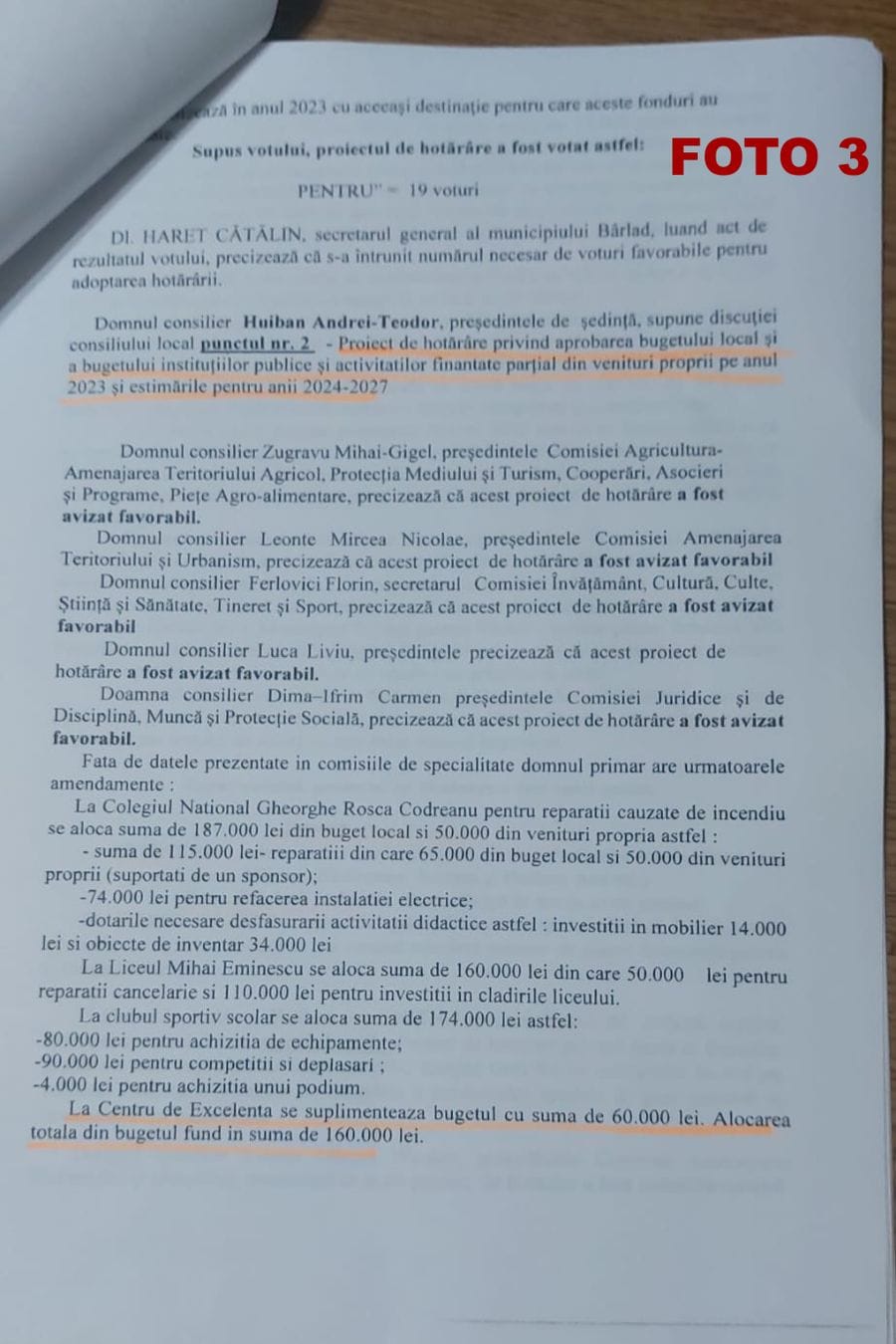 * Doamna Gabriela Plăcintă a solicitat pentru Centrul de Excelență suma de 100.000 de lei, restul de 60.000 de lei fiind o suplimentare făcută la propunerea mea, în cadrul unei ședințe de Consiliu Local, din luna februarie 2023, aspect menționat în procesul-verbal al ședinței respective (foto 3).