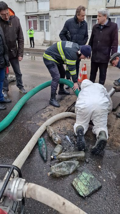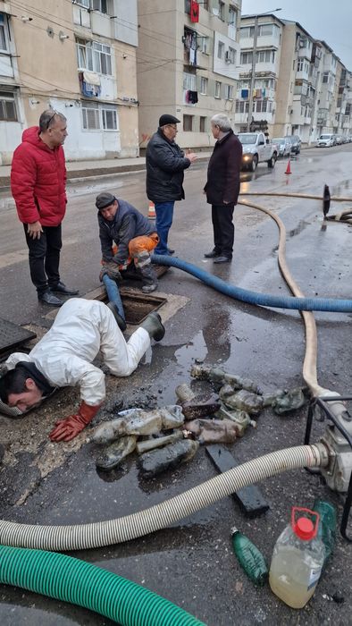 Cei peste 20 de muncitori implicați în intervenție au scos din țevi zeci de PET-uri, sticle, cutii de conserve, doze de bere și de suc, bolovani, moloz și chiar un cauciuc.