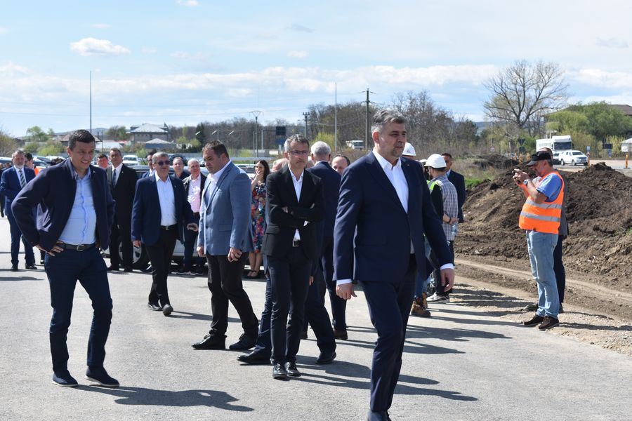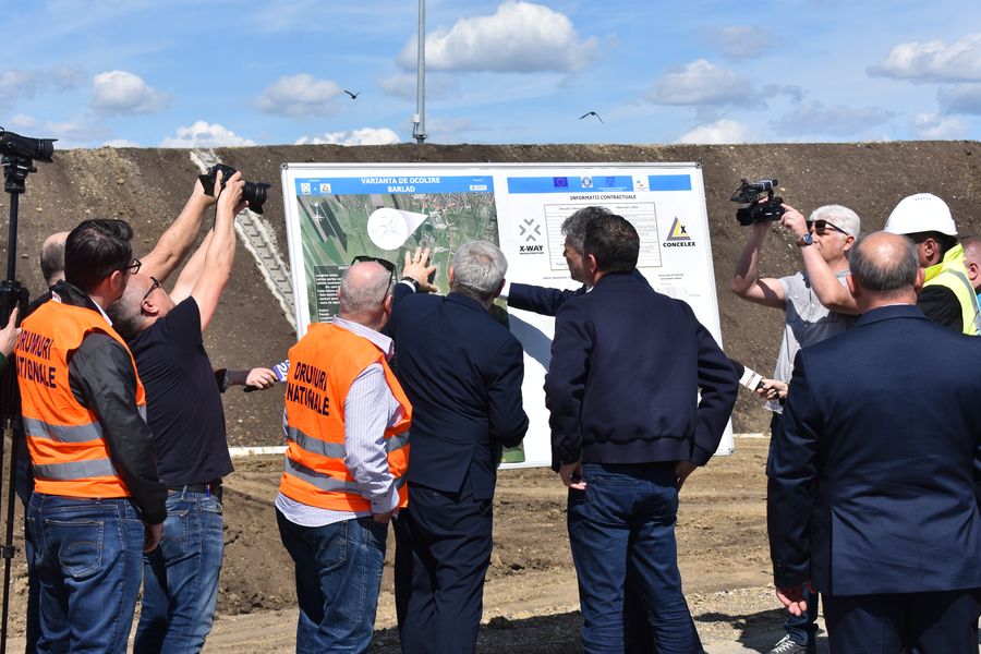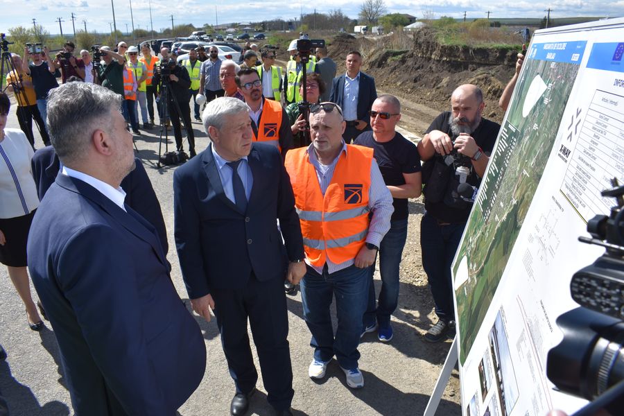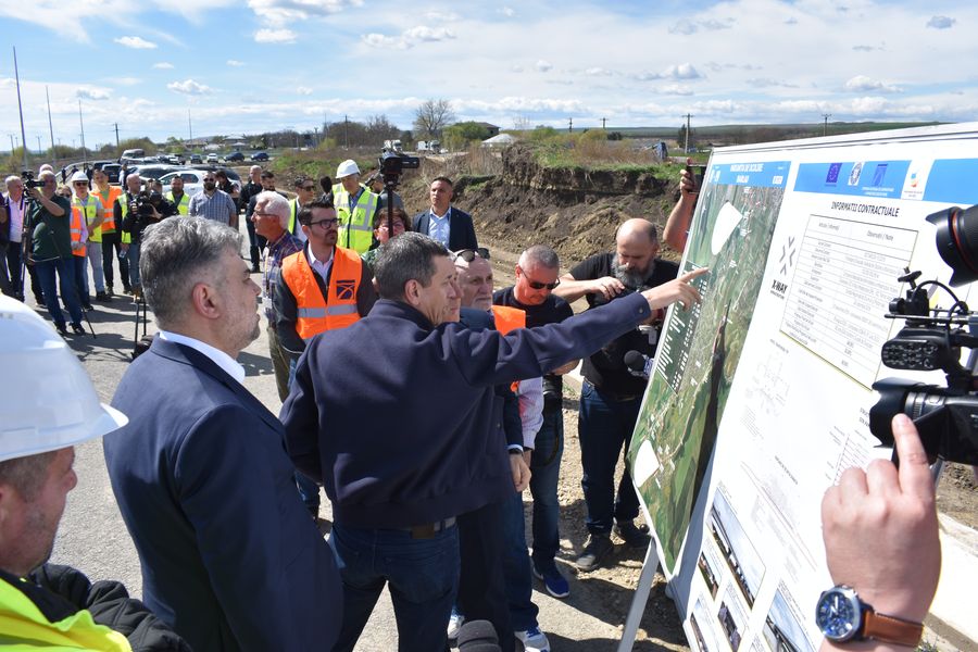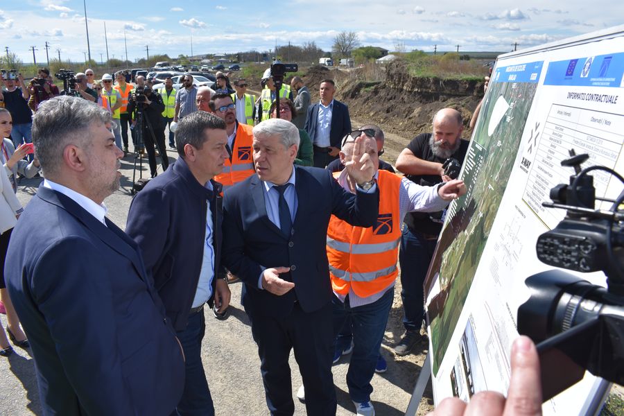 Zi importantă la Bârlad, astăzi. Marcel Ciolacu, prim-ministrul României, Sorin Grindeanu, ministrul Transporturilor și Adrian Câciu, ministrul Fondurilor Europene, s-au aflat în vizita pe șantierul Variantei Ocolitoare a Bârladului (VOB).