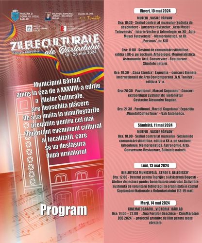Acasă Cultura Programul Zilelor Culturale ale Bârladului ediția XXXVIII, 2024 Cultura Programul Zilelor Culturale ale Bârladului ediția XXXVIII, 2024 De către Simona Mihaila - 13 mai 2024 0 FacebookWhatsAppEmailImprimare ARTICOLE SIMILAREDE LA ACELAȘI AUTOR Gura Leului, simbol al Bârladului de altădată, renaște printr-un obelisc ridicat în memoria locului Festivalul național ”Folk la Bârlad” – ediția a II-a Proiect pentru salvarea Casei de Cultură ”George Tutoveanu” inițiat de Primăria Bârlad Biblioteca ”Stroe S. Belloescu”, încă un pas către reabilitare A fost semnată autorizația de construire pentru reabilitarea Casei Cerchez, sediul Școlii de Muzică ”Nicolae N. Tonitza” Bârlad A fost declarat câștigătorul licitației pentru lucrările de restaurare a clădirii care va găzdui Palatul Cultural al Bârladului Două noi investiții vor da viață centrului istoric și cultural al Bârladului Mesajul primarului Dumitru Boroș cu ocazia Zilei Internaționale a Persoanelor Vârstnice Finanțare guvernamentală pentru reabilitare Casei Theodor Cerchez, fostul sediu al Școlii de Muzică Scriitorul Lucian Vasiliu, Cetățean de onoare al Bârladului, laureat al Premiului Național de Poezie ”Mihai Eminescu” – Opera Omnia Spectacol incendiar al Direcției 5 la Festivalul „MotorFest”, ediția a IV-a Start MotorFest, start la distracție și concerte incendiare! LĂSAȚI UN MESAJ Renunțați la răspuns Vă rugăm să introduceți comentariul dvs.! Introduceți aici numele dvs. Ați introdus o adresă de e-mail incorectă! Vă rugăm să introduceți adresa dvs. de e-mail aici Salvați numele meu, adresa de e-mail și site-ul web în acest browser pentru data viitoare i comentariu. Δ