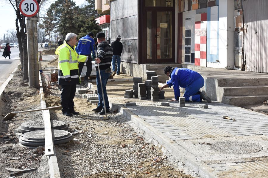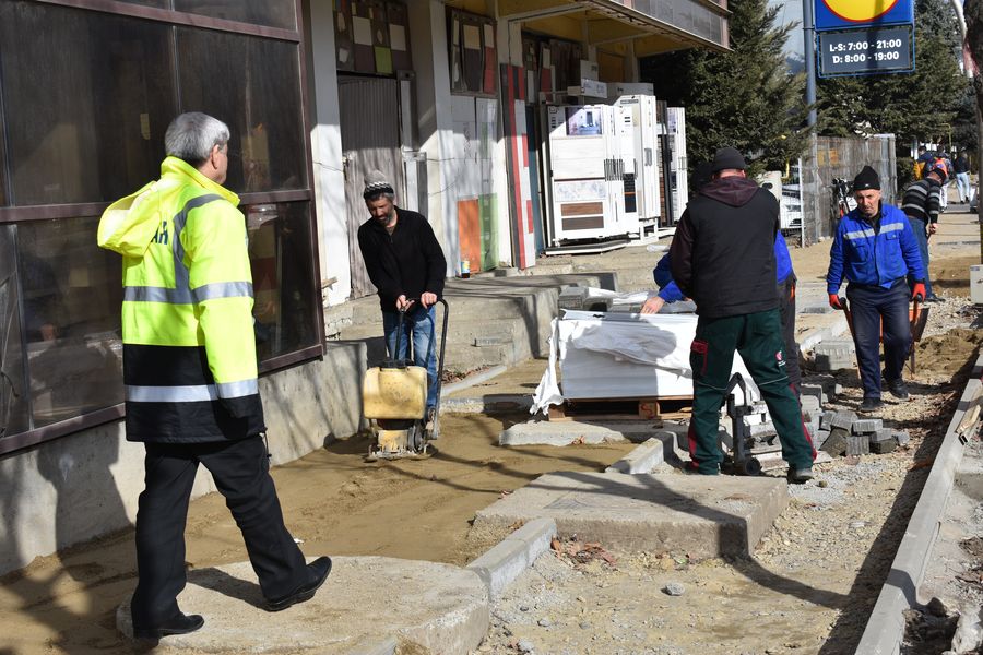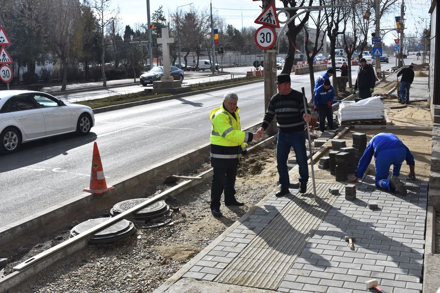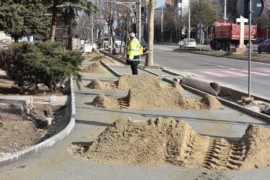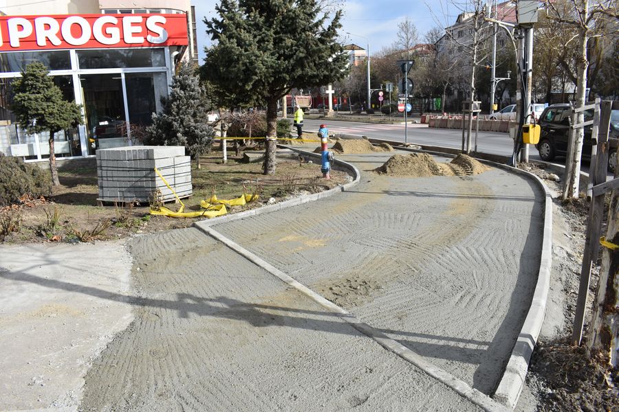Modernizarea trotuarelor de pe Bulevardul Republicii este aproape de final, însă deja câteva echipe de muncitori s-au apucat de lucru, spre sud, și pe partea stângă a străzii Tecuciului.