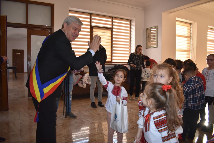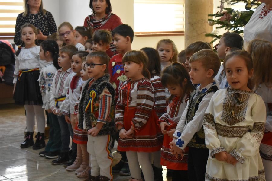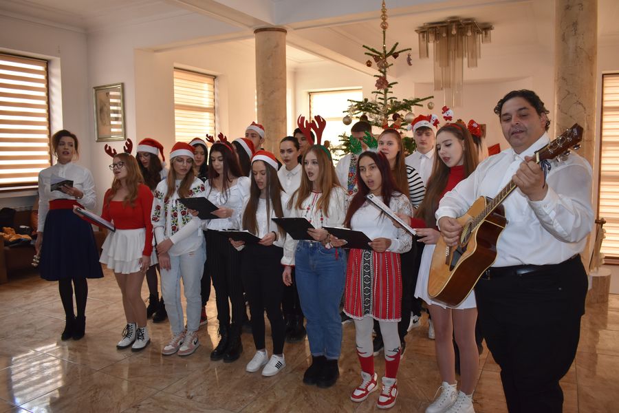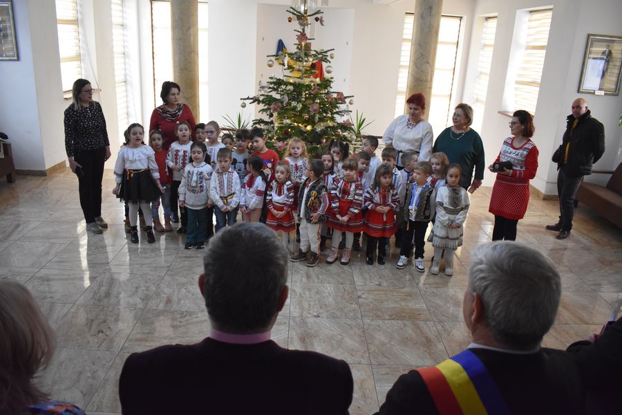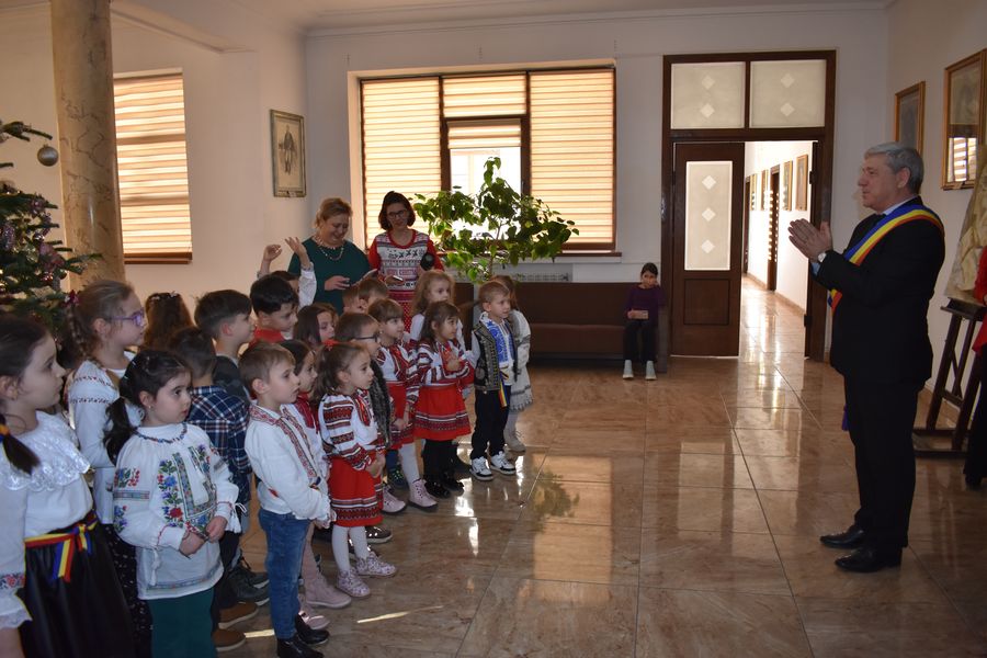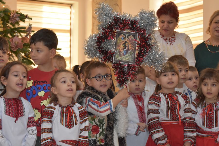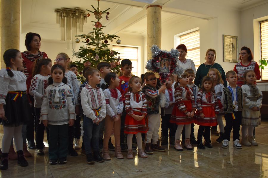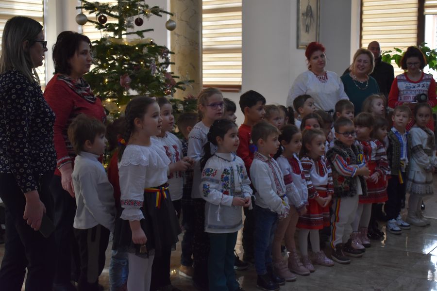 Astăzi ne-au călcat pragul peste 140 de preșcolari, școlari și liceeni, care au transmis bucuria colindelor într-o manieră cum doar glasurile de copil o pot face.