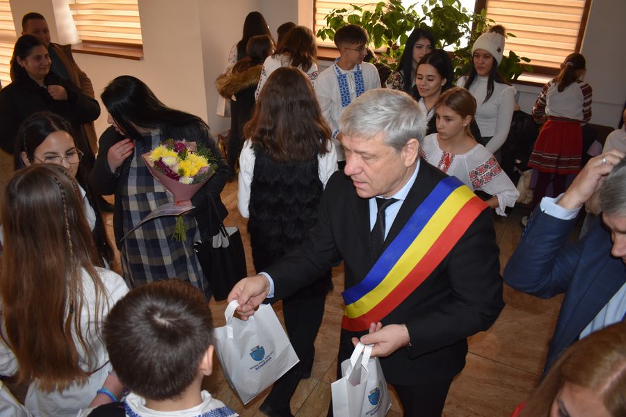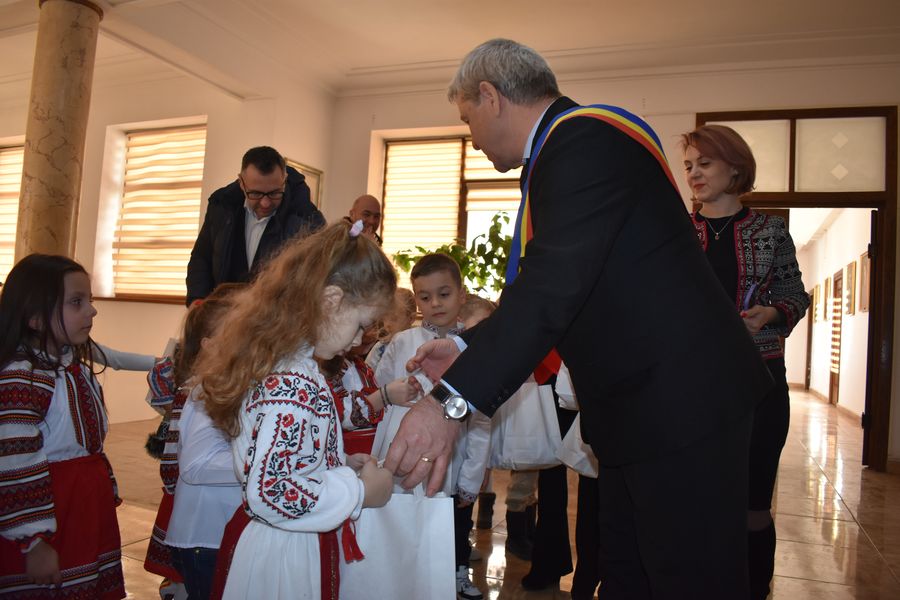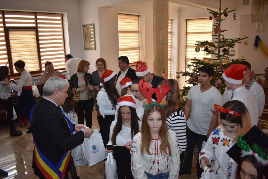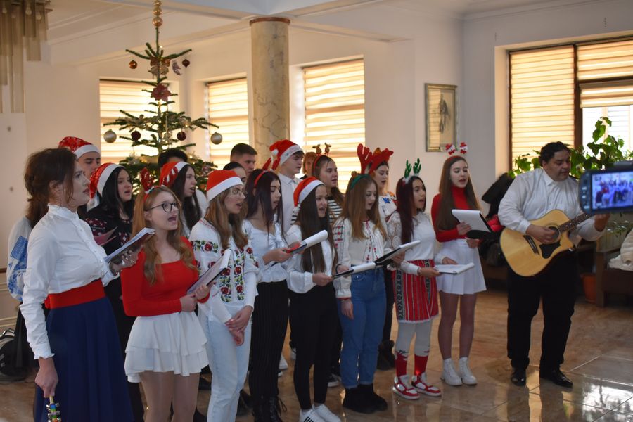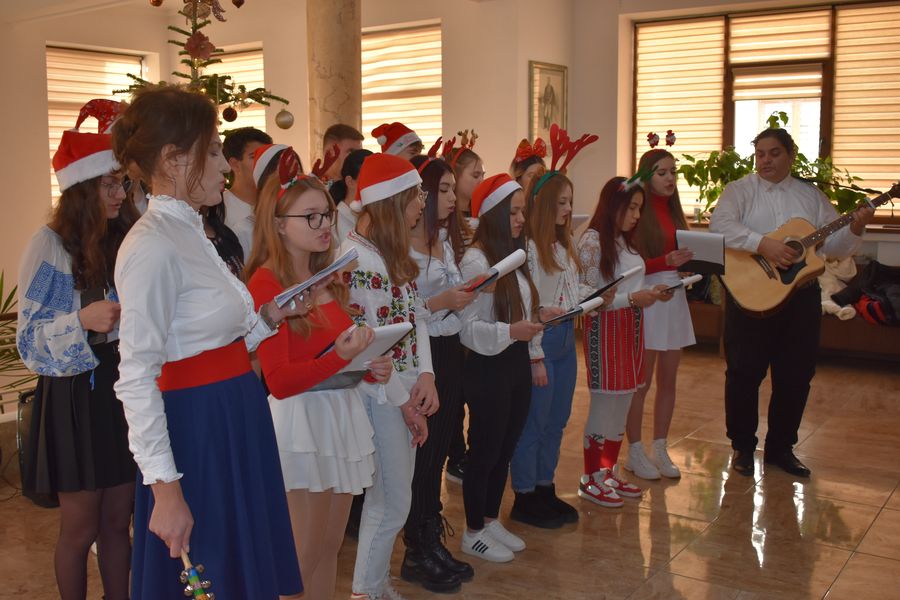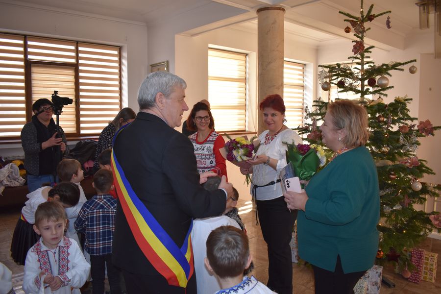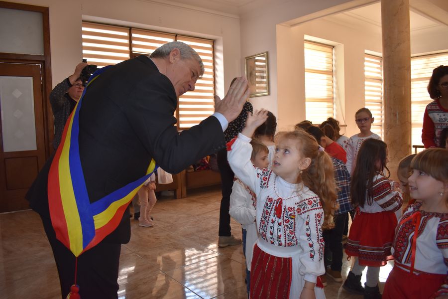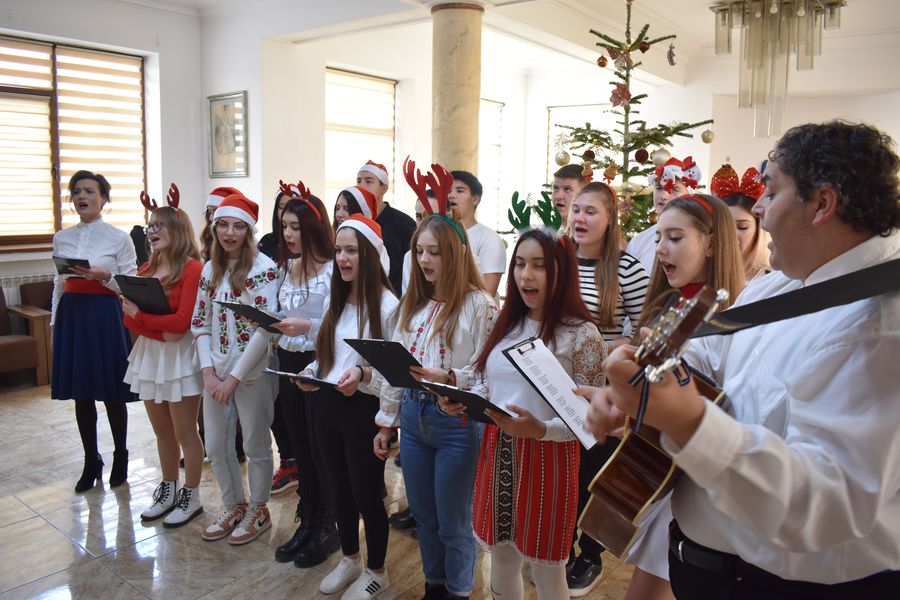 Astăzi ne-au călcat pragul peste 140 de preșcolari, școlari și liceeni, care au transmis bucuria colindelor într-o manieră cum doar glasurile de copil o pot face.