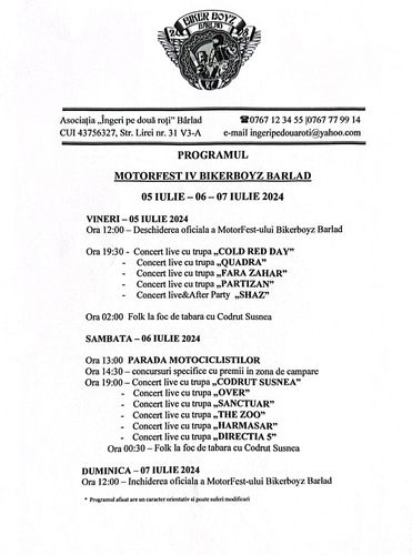 Toate detaliile Festivalului se pot obține de pe pagina oficială de Facebook a colaboratorilor de la BikerBoyz Bârlad.