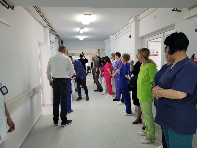 La inaugurare au fost prezenți, în afară de conducerea spitalului (managerul Ciprian Feraru, directorul medical, dr. Gabriela Daniș, și directorul de îngrijiri medicale, Cristina Sârbu), primarul Dumitru Boroș și consilierii municipali Carmen Dima, Florin Palade și Florin Ferlovici. Nu a lipsit, bineînțeles, personalul care va fi de miercuri, 1 mai, în slujba primilor pacienți a căror viață trece acum prin momente de mare cumpănă. De asemenea, preotul spitalului a oficiat o slujbă de sfințire a spațiului.